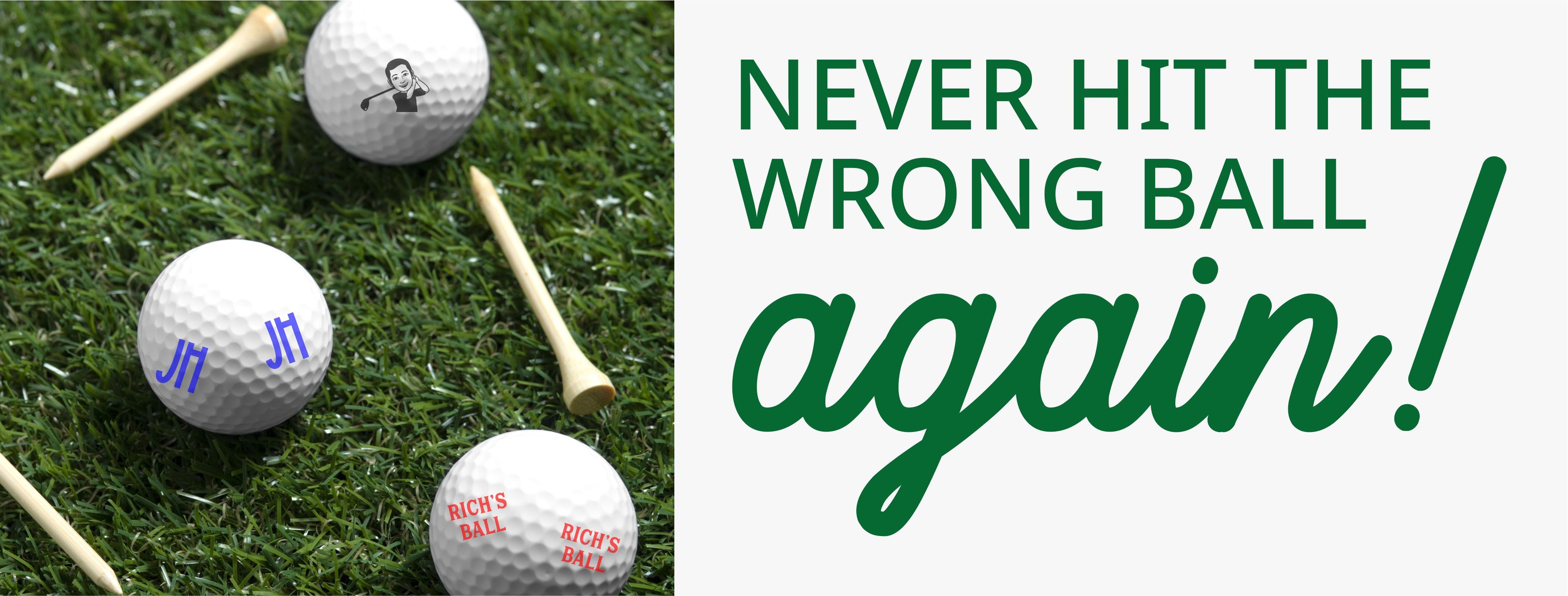Stamp your name, initials, a custom message, or logo that will fit within 12 letters or a 1/2" circle on your golf balls.